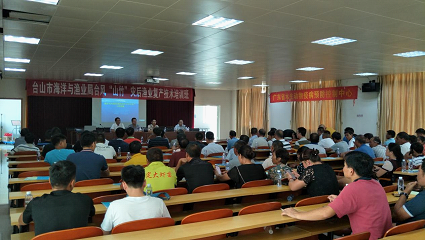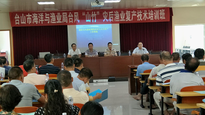 今年第22号超强台风“山竹”正面袭击我市,给我市水产养殖业带来巨大影响,为进一步做好灾后复产工作,加快恢复灾后渔业正常生产秩序。9月21日,台山市海洋与渔业局联合江门市海洋与渔业局、江门市海洋与渔业技术推广站在海宴镇举办台风“山竹”灾后渔业复产技术培训班。