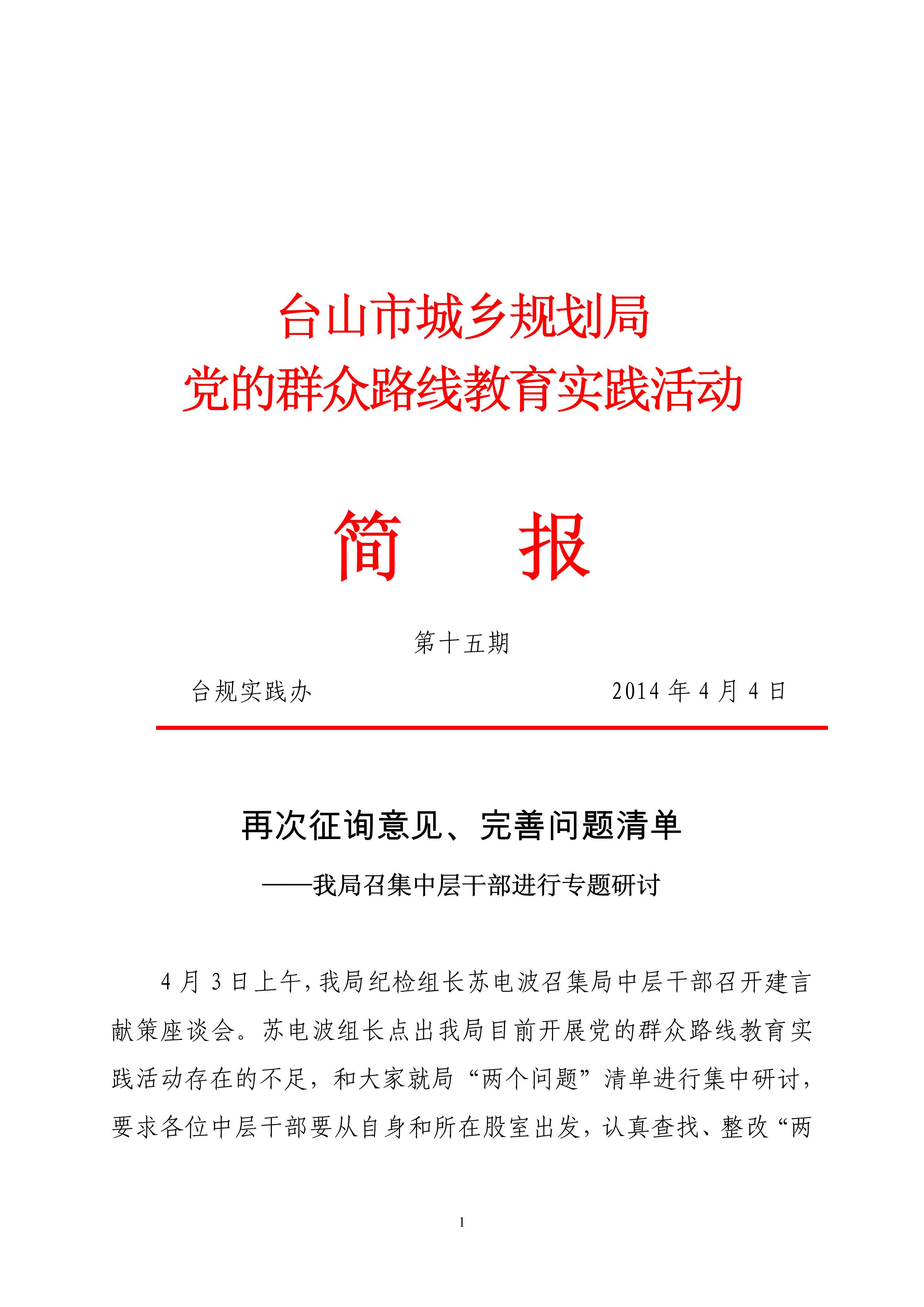 再次征询意见、完善问题清单(台规实践办第15期)