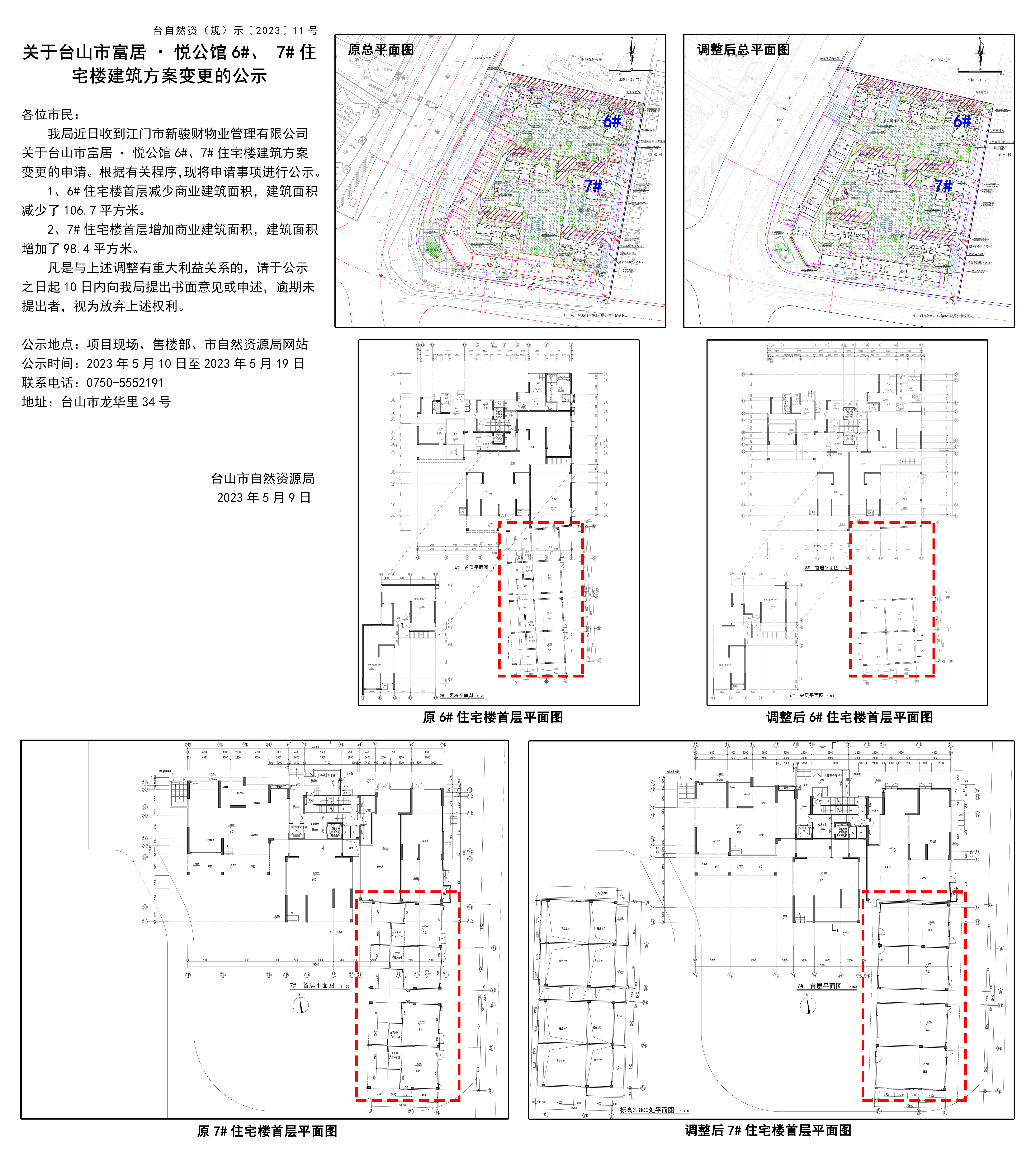 关于台山市富居悦公馆6#、7#建筑方案变更的公示