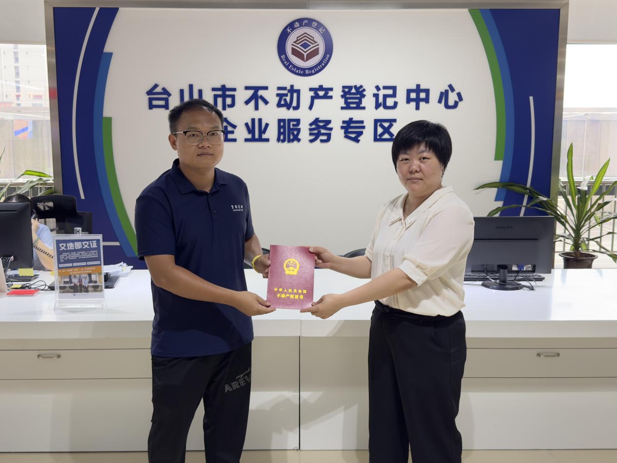 2024年7月1日,台山市自然资源局与工业新城精密金属制造项目企业完成交地的同时,台山市不动产登记中心向该企业核发了《不动产权证书》,实现交地与发证“双同步、零时差”。这是我市今年办理的第三宗“交地即交证”业务。
