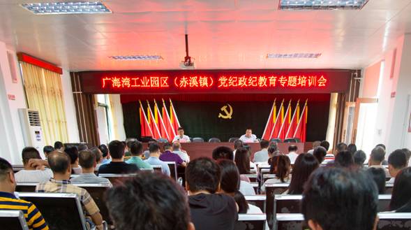 7月4日下午,广海湾工业园区(赤溪镇)党纪政纪教育专题培训会在赤溪镇政府三楼会议室举行,市纪委常委、市监委委员陈立慧给园镇全体干部上了一堂主题为《讲规矩,守纪律,坚持不懈落实中央八项规定精神》的廉政教育课。会议由广海湾工业园区党工委副书记、管委会主任梅立全主持,园镇全体干部职工和赤溪镇各村(居)委会两委干部参加了此次会议。