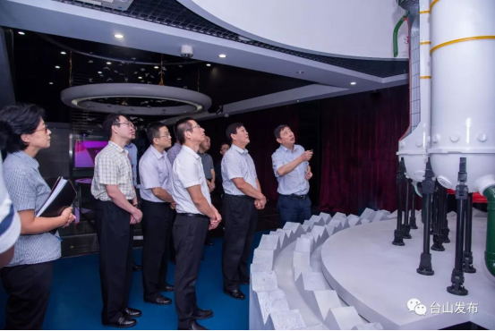 随后,徐建华一行来到台山核电合营有限公司,参观企业展厅,了解台山核电生产经营情况。台山核电一期工程是中法两国能源领域在华最大的合作项目,建设两台单机容量为175万千瓦的核电机组。目前,1号机组已于去年12月13日投入商运,2号机组在今年9月7日具备商运条件。台山核电1、2号机组建成,预计每年可减少标煤消耗约803万吨,减少温室气体排放超过2109万吨,相当于造林5850公顷。