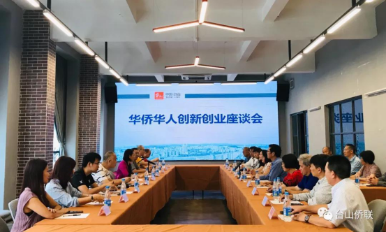 10月24日,美国企业家联谊会一行到访台山,拜访台山市侨联会。当天上午,市侨联会组织召开华侨华人创新创业座谈会,市府办、市委统战部、市科工商务局等部门单位领导和我市侨界企业家代表出席,就我市创新创业发展状况进行座谈。
