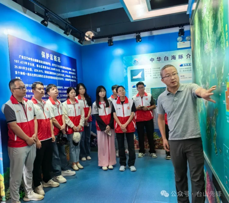 在活动的第一站,选调生来到中华白海豚省级自然保护区管理处参观白海豚科普宣教馆。工作人员通过介绍馆内的实物标本、科普板块、保护区日常工作等内容,让大家深入了解中华白海豚及其栖息地的知识,并倡导参与活动的选调生能够成为中华白海豚保护的宣传者、实践者和推动者,为守护中华白海豚,维护生物多样性,促进人与自然和谐共生凝心聚力。