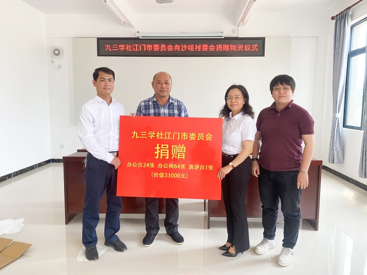 为进一步落实帮镇扶村工作,加强结对帮扶单位的帮扶力度,改善沙咀村委会新办公楼配套基础设施,九三学社江门市委员会向沙咀村委会捐赠一批办公室用品。