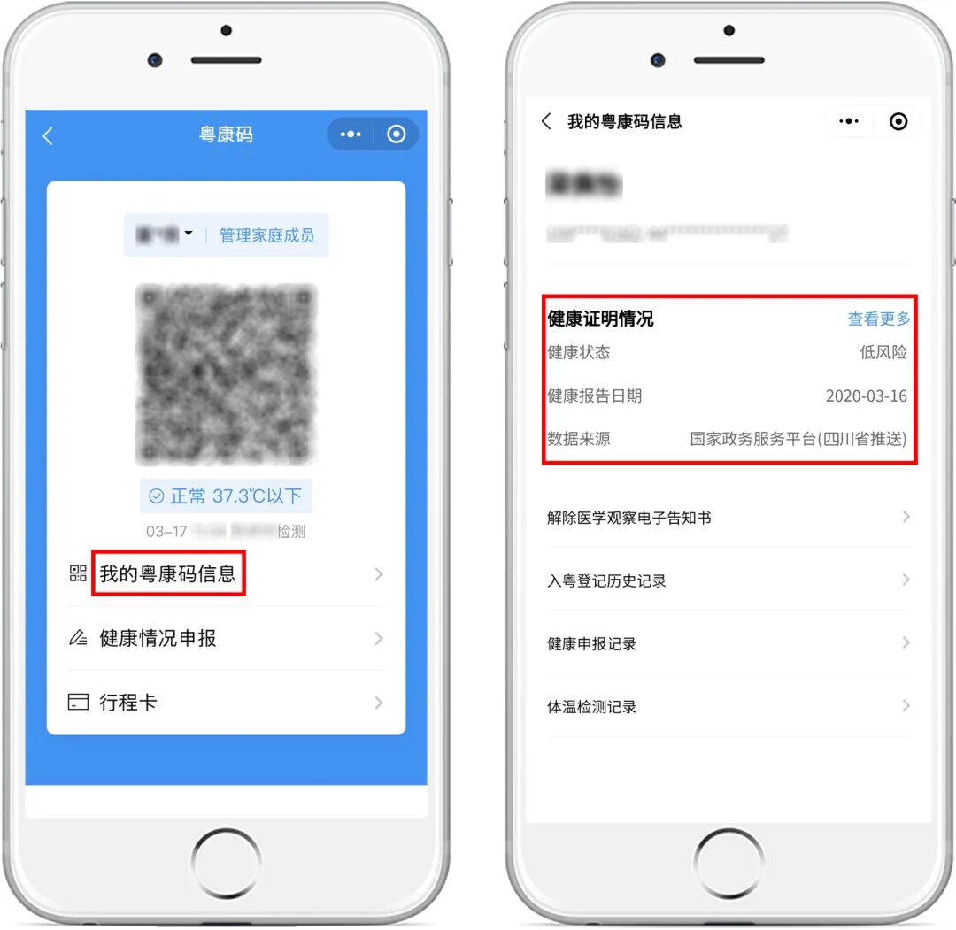 群众进入“粤康码”服务后,点击“我的粤康码信息”可查看湖北省、四川省、湖南省、河南省等省份的健康信息。