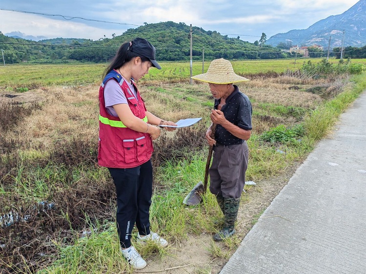 北陡镇网格员进村入户到田间地头加强防风宣传。