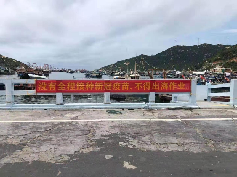8月起,镇村两级干部全体出动向辖区渔民分发《川岛镇给渔民的一封信》宣传单,在主要干道拉横幅,通过码头大喇叭播放音频,广泛普及疫情防控知识和防控措施,落实疫情防控宣传全覆盖,保障所有渔船渔民做到“不安全,不出海”。