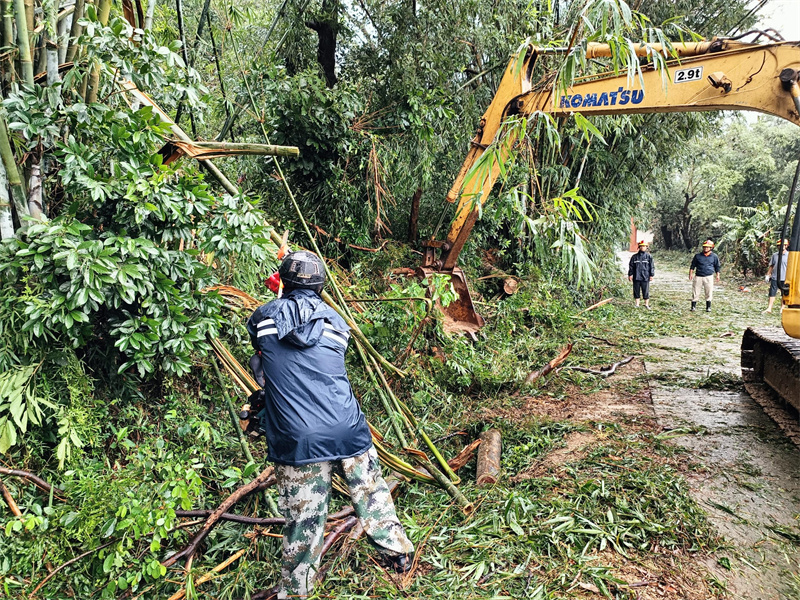受台风影响,辖区部分区域有树木倒伏、断枝,灯柱倒塌和房屋受损等情况,应急救援队伍迅速调动应急物资开展清理抢险工作,对其他受灾部位及时落实警戒,保障群众出行安全。