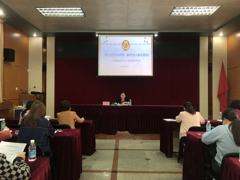 3月1日,川岛镇妇联在港务四楼会议室开展以“践行习近平法治思想,维护妇女儿童合法权益”为主题的“三八”普法维权周活动。
