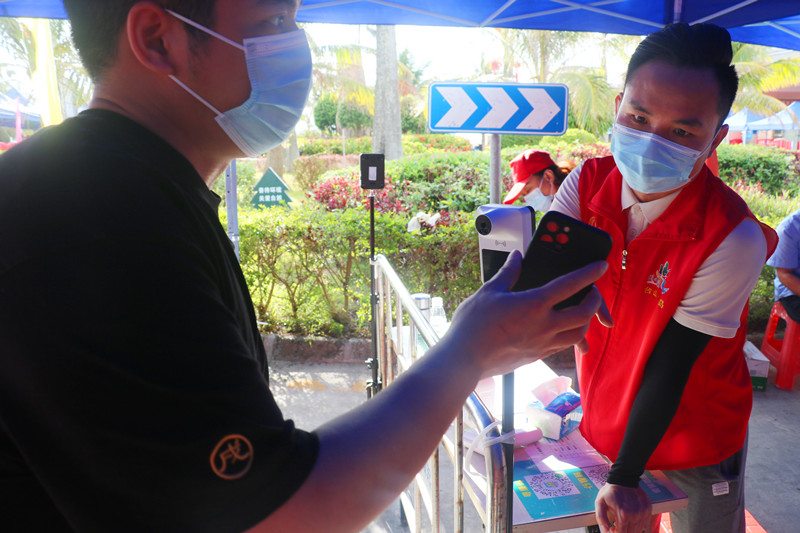 “请问我没有核酸报告可以过岛吗?”“你好,我从广州过来,麻烦帮我登记一下。”“我手机没网络,无法显示健康码,该怎么办呢?”在游客咨询与核查登记岗,志愿者耐心地为游客解疑释惑,认真地填写信息,做好登记核查。