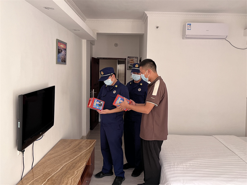 检查组深入到辖区内各加油站、煤气供应站、烟花爆竹零售点、制冰厂、修船厂,检查了各场所消防器材、压力设备、电力设施以及易燃易爆材料的管理和使用情况;深入各酒店、民宿、娱乐场所、饭店等,检查了消防安全疏散指示标志、应急照明灯等消防设施的设置情况,了解消防安全责任人、管理人是否明确职责等。