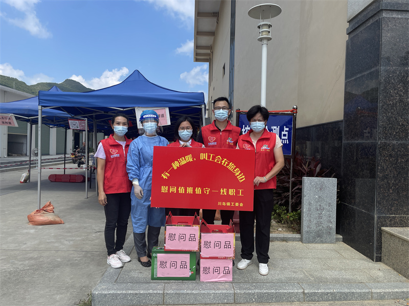 为了感谢全体一线工作人员的辛勤付出,连日来,川岛镇工委会先后前往当地健康服务站、便民服务点等值班值守卡点,慰问奋战在一线的工作人员,向大家送去节日的祝福以及解乏降暑的物资。