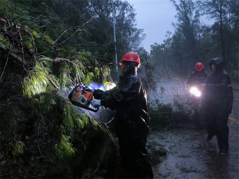 受台风影响,辖区部分区域有树木倒伏、断枝,灯柱倒塌和房屋受损等情况,应急救援队伍迅速调动应急物资开展清理抢险工作,对其他受灾部位及时落实警戒,保障群众出行安全。