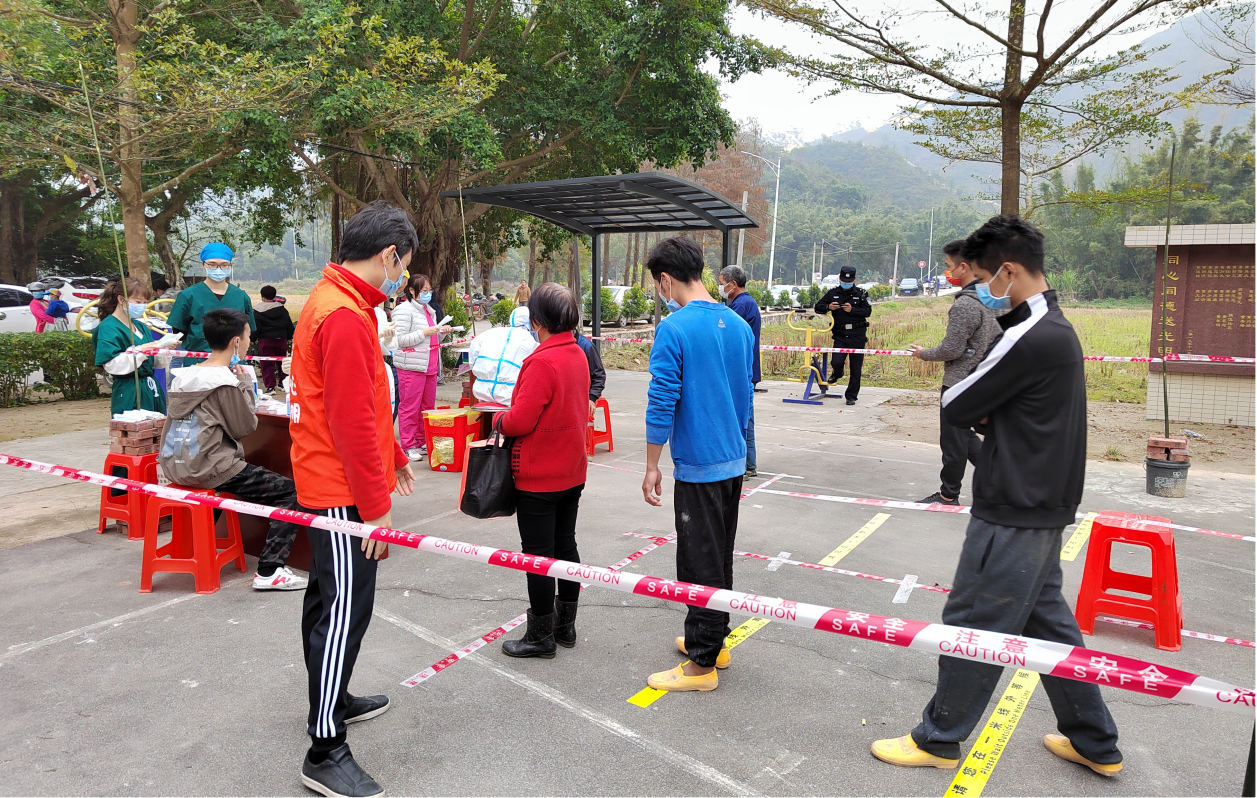 工作人员提前做好动员宣传,通过电话通知、实地走访发放传单等方式发动更多群众,还充分利用了微信群、朋友圈等网络平台转发政府公告,把采样流程和时间告知群众,协助群众提前在“粤核酸6”小程序登记好信息,让群众做到心中有数。
