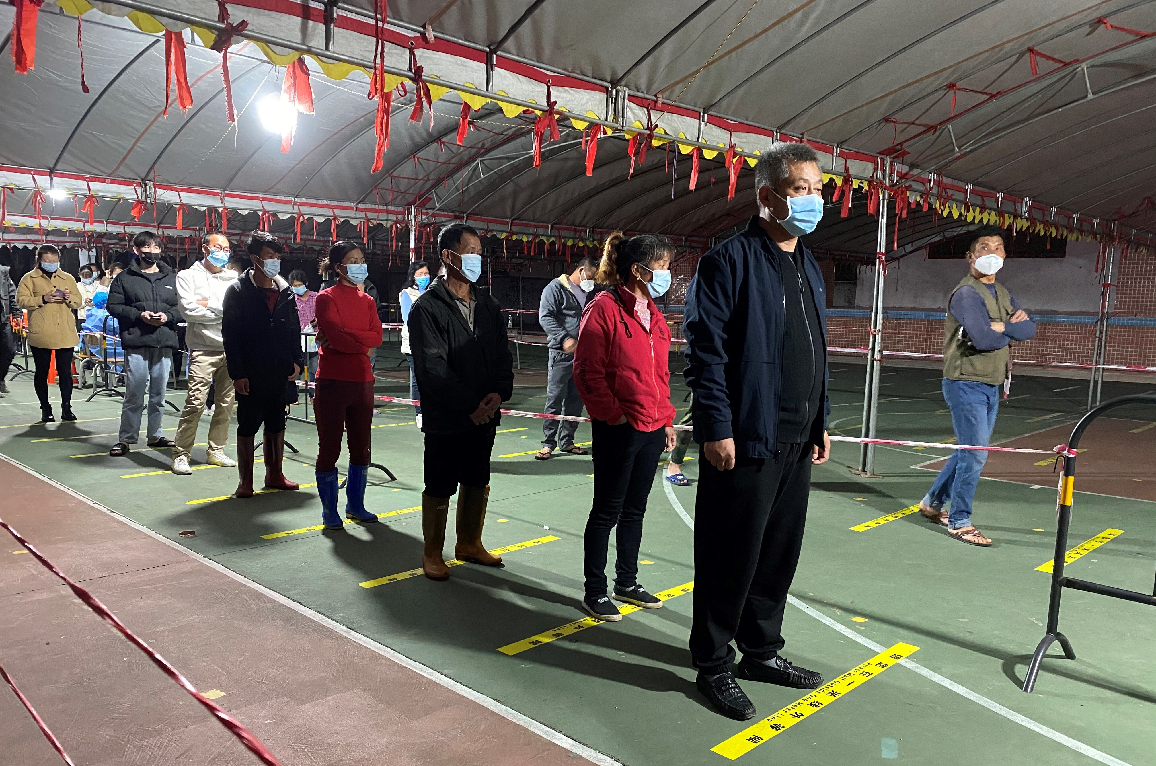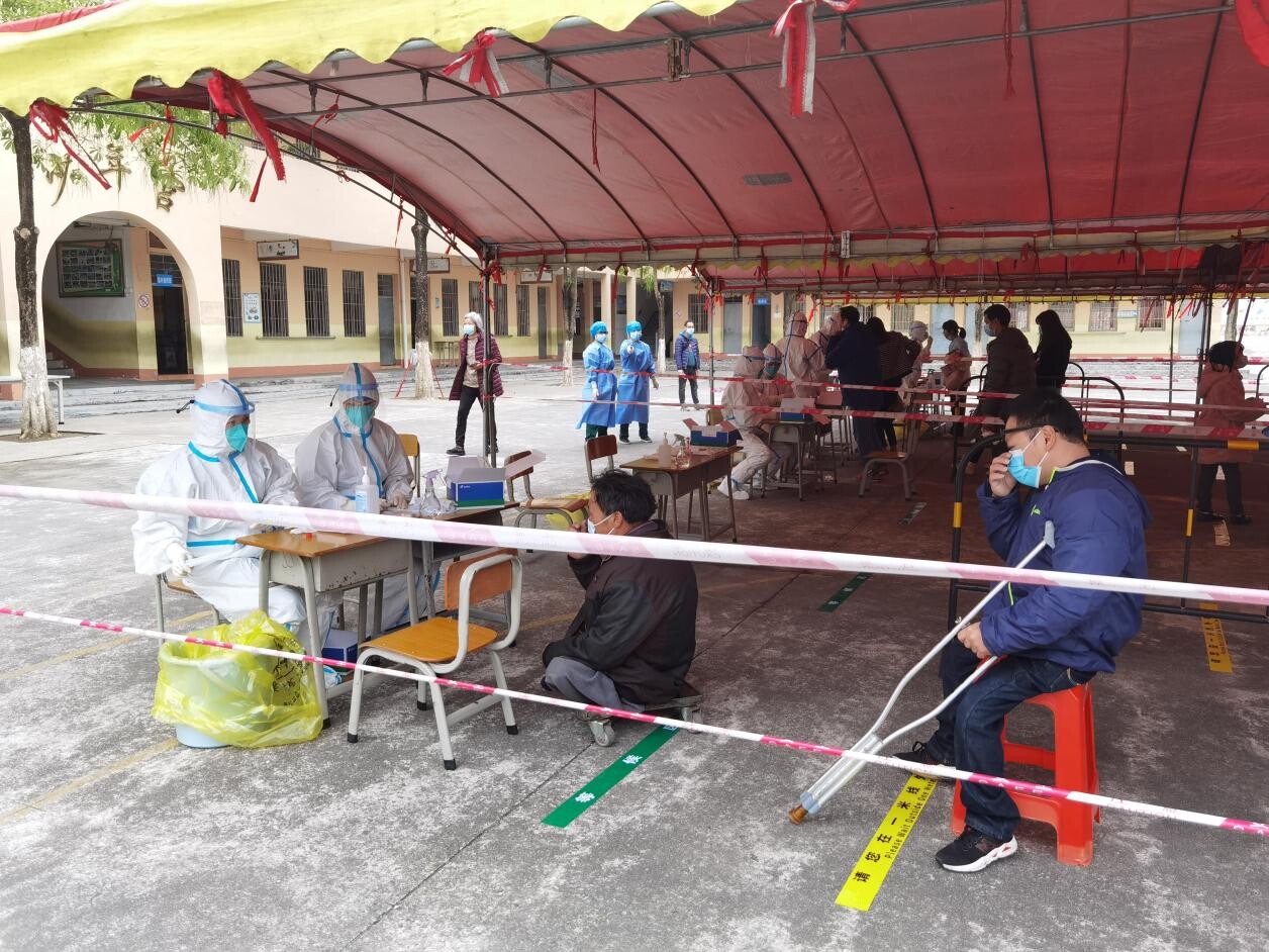 检测棚、隔离栏、警戒线,医护人员、民警、工作人员、党员志愿者……经过一夜的紧急响应,1月15日一早,赤溪镇核酸筛查准备工作一切就绪,各个采样点工作在井然有序的氛围中准时启动。