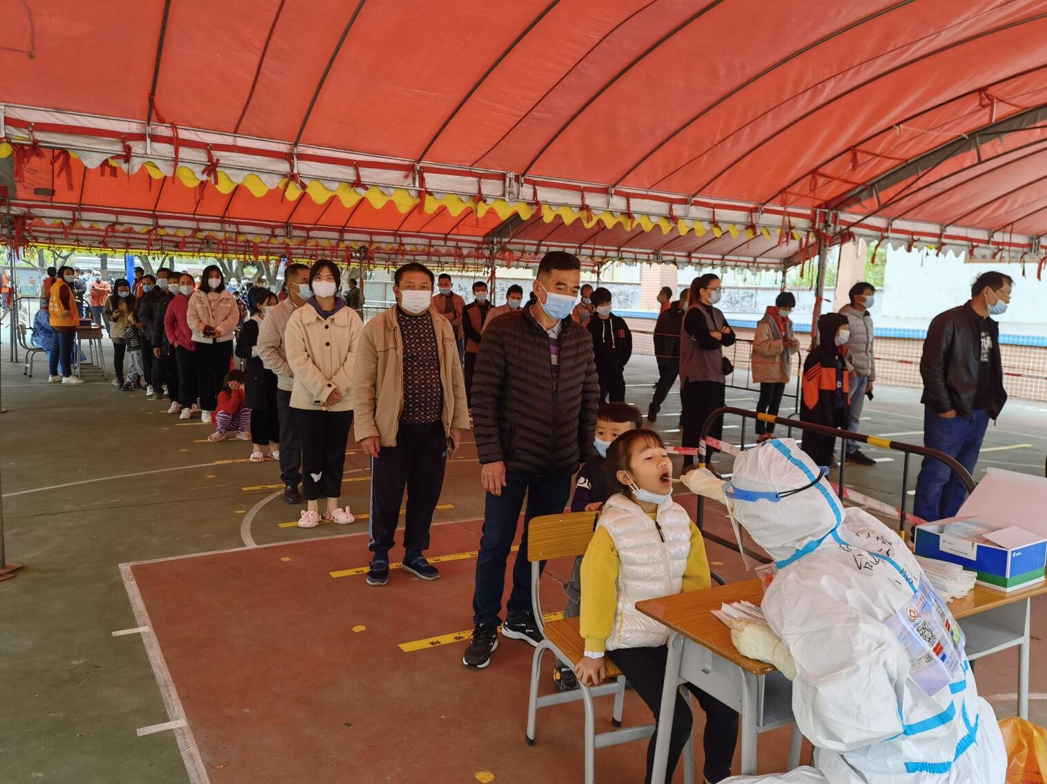 核酸筛查采样工作一直持续到晚上,志愿者一直驻守现场,维持现场秩序,协助医护人员,悉心帮助群众。群众也听从现场安排指引,耐心排队等待采样,共同维持现场良好秩序,截至晚上11时,已经取样26544人次。