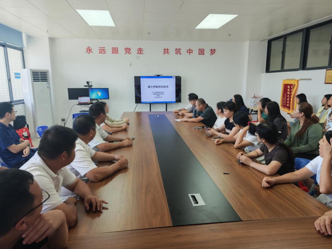 为确保消杀工作专业规范、精准高效,赤溪镇多次组织镇村干部、学校和医院工作人员开展虫媒传染病消杀专题培训,通过“理论课程讲解+消杀工具实物操作演示”的方式,详细讲解蚊媒消杀的药剂配比、器械使用、安全防护等实操要点,提升一线人员的消杀技能。同时组织镇村爱卫工作负责人、蚊媒消杀工作人员,参加江门市卫生强市爱卫办举办的媒介伊蚊防控技术视频培训,由专家系统讲解蚊媒传染病流行特点、应急处置等知识,为消杀工作提供专业技术支撑。