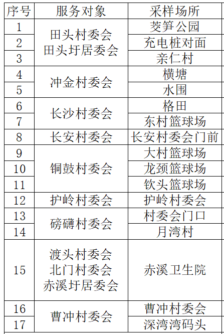 在全镇设置了十七个核酸采样点,具体分布和覆盖地区如下: