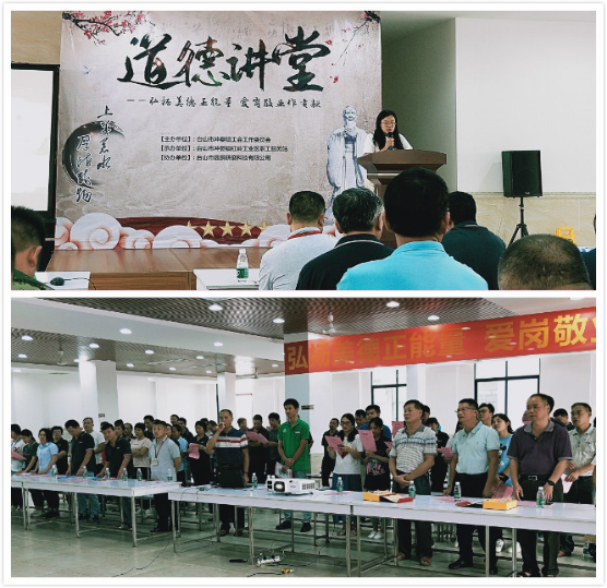 为进一步强化意识形态主阵地建设,深入学习宣传贯彻党的十九大精神,全面推动习近平新时代中国特色社会主义思想进农村、进机关、进校园、进社区、进企业,进一步提高基层宣传思想文化工作和精神文明建设,近日,镇工委会在台山市远鹏研磨科技有限公司开展了以“弘扬美德正能量,爱岗敬业作贡献”为主题的企业道德讲堂活动。出席本次活动的有市总工会纪检组长、党组成员甄国良,镇委委员、工委会主席兰立英,镇人大专职副主席黄一劲,以及来自镇机关工会及各企业的工会代表共130多人。