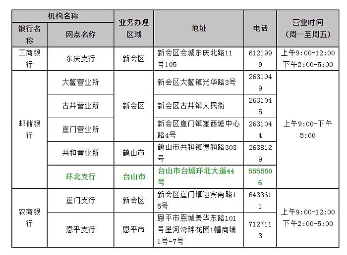 为方便缴存单位和职工办理业务,提高住房公积金服务效率,8月15日起,江门增加8个办理住房公积金归集、提取业务受理银行网点。其中,台山新增一个。
