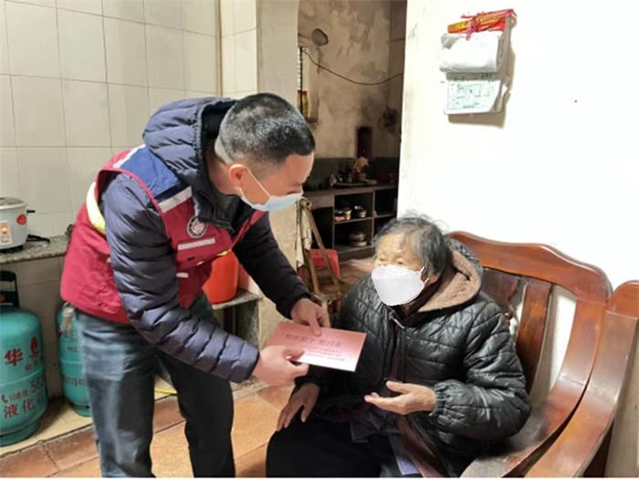 志愿者、网格员、社工入户慰问困难、残疾家庭并发放慰问物资
