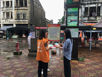 梅家大院和海口埠不仅作为南粤古驿道端芬段的景点,更是端芬的“形象代言人”。保护环境,倡议清洁出行,义不容辞。义工们无惧风雨,小小身影,穿梭于游客所到之处,为游客们派发倡议书,提醒他们游览旅游景点的注意事项,倡议环保出行,文明游玩,杜绝白色污染。沿途也做起了驿道“卫士”,保障驿道沿途的风光不被污染。义工们也向景点的商家派发倡议书和环保包装袋,得到了商家的肯定和支持。