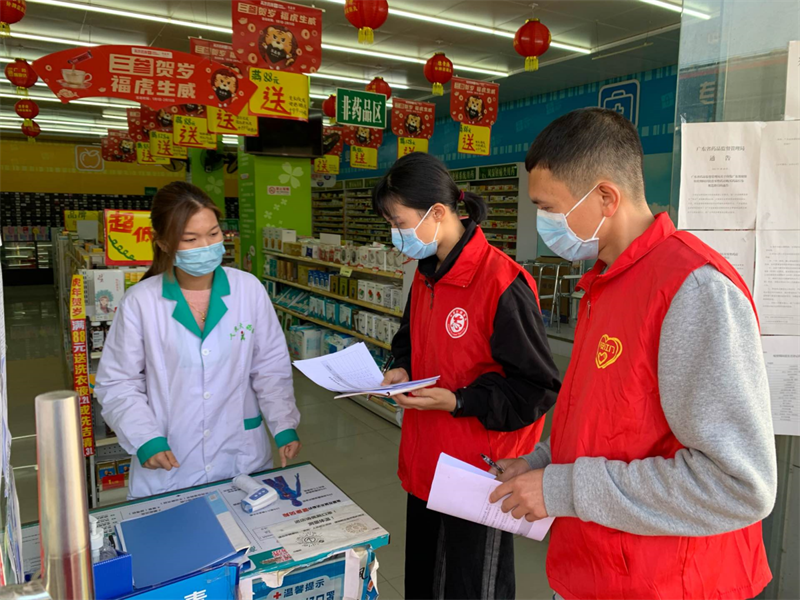 三是志愿者深入一线,积极引导各商铺经营者和在岗员工佩戴口罩,且按规定及时更换。在显眼位置张贴“一米线”和佩戴口罩、扫码、测温等疫情防控提示,共同构筑疫情防控防线。