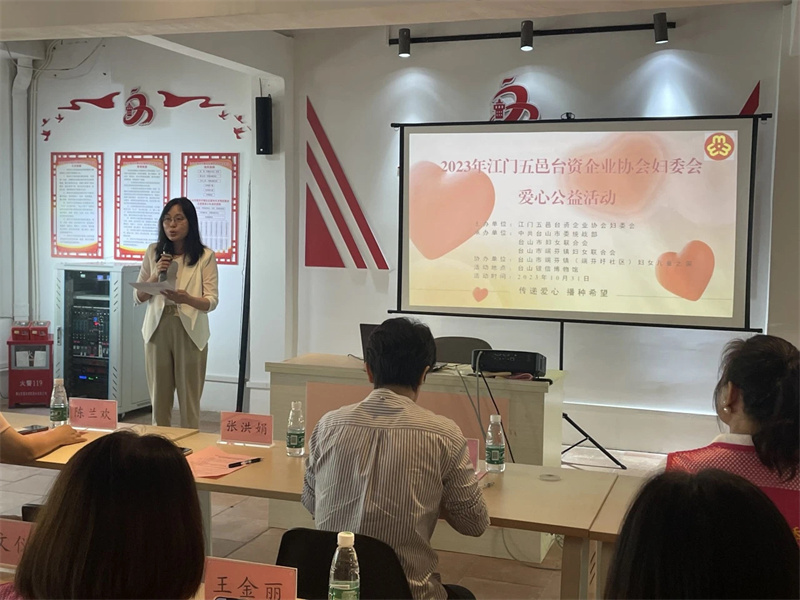 据了解,江门五邑台资企业协会成立于1997年,成员乃江门市五邑地区(包括江门市蓬江、江海、新会三区及台山、开平、恩平、鹤山四个县级市)的台资企业,是一个旨在加强政府与台资企业之间交流、促进台商发展的社会团体组织。协会自成立以来,秉持“联系台商、服务台商、促进发展”的创会宗旨,竭力协助解决台商在扎根江门所遇到的各种难题。多年来,江门五邑台资企业协会妇委会一直心系江门,多次投身于助学捐赠、帮扶困难户、关爱孤独症儿童等社会公益活动,充分体现了守望相助、“两岸一家亲”的同胞情谊。