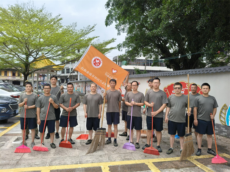 共创文明城,民兵在行动。近日,端芬镇民兵志愿服务队在端芬圩社区附近街道开展创文活动,以实际行动践行民兵志愿者的使命和担当。