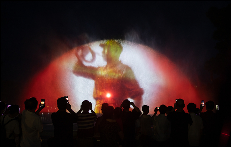 荷池溢彩光,水幕现斗山。以历史为卷,以光影为笔,斗山镇经过3个月的精心筹备制作了“庆祝建党百年华诞”的主题水幕电影,吸引了不少群众前来观看。
