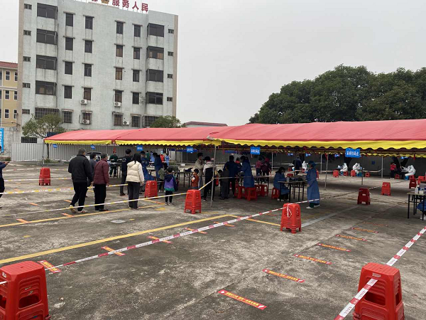 ↑环城社区利用环城小学旧址设置核酸采样点。