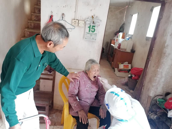 ↑医护人员上门为行动不便或是长期卧床的公公婆婆进行采样。