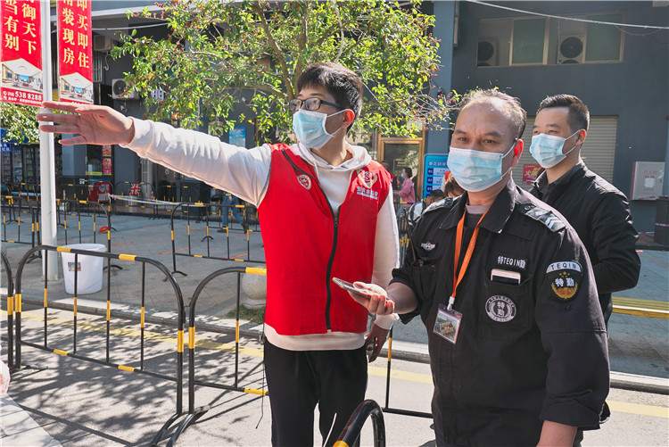 △志愿者引导群众进入采样点