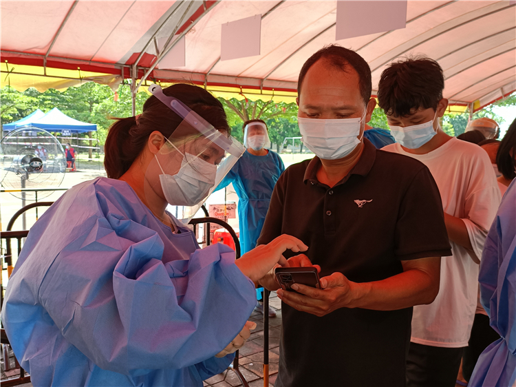 ▲返乡外出党员在帮助群众生成核酸检测“葵花码