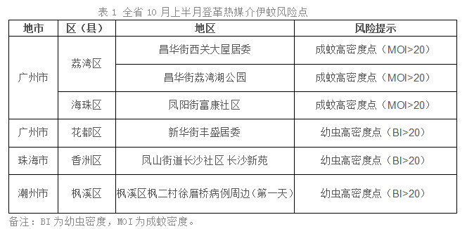 广东省2023年10月上半月登革热媒介伊蚊监测风险提示