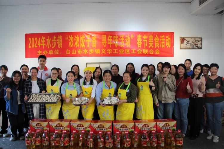 为充分展现水步镇职工的精神面貌,营造企业职工“相亲相爱一家人”的良好氛围,也让广大职工群众共同感受侨乡美食、侨乡风俗、侨乡温暖,2024年新春佳节来临之际,台山市水步镇文华工业区工会联合会组织文华工业区职工会员在下洞村侨汇里开展“到咱家过年”系列活动——“浓浓饺子香 寻年味活动”,职工群众约30人参与活动。