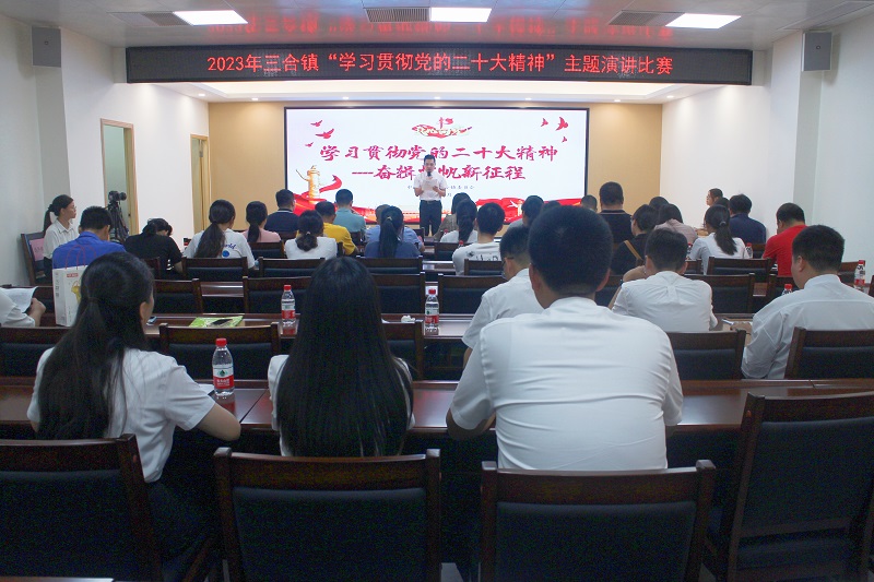 为扎实推进学习贯彻落实党的二十大精神,用党的科学理论武装干部,用党的初心使命感召干部,激励青年干部以更加昂扬姿态积极投身三合经济社会高质量发展建设中,7月31日,三合镇“学习贯彻党的二十大·奋楫扬帆新征程”演讲比赛在镇党群服务中心举行。镇领导班子、各办(所)负责人出席活动,镇干部到场观赛学习。