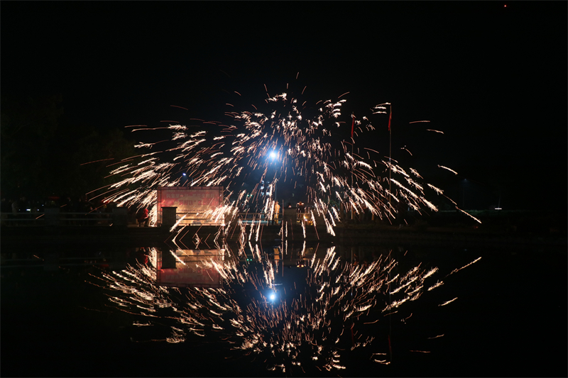 “打铁花”历史悠久、观赏性强,黎洞村活动现场“打铁花”表演气势磅礴,惊险刺激、喜庆热闹,活动现场人潮涌动,欢呼声此起彼伏。