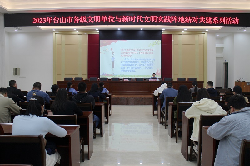 为充分发挥文明单位职能优势和新时代文明实践所阵地优势,实现资源互补“双提升”,结对单位台山市人民检察院联合三合镇新时代文明实践所共同开展以“聚焦家庭教育,护航儿童健康成长”为主题的2023年台山市各级文明单位与新时代文明实践阵地结对共建活动。