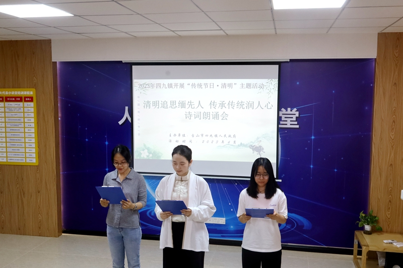 文明四九,向美而行,通过此次清明诗词朗诵会专题活动,充分挖掘民族传统节日文化内涵,从诗词中汲取文化力量,从经典中领悟人生智慧,从朗诵中感知先辈精神。四九镇紧紧围绕培育和践行社会主义核心价值观,把“我们的节日”融入新时代文明实践,依托媒体平台、新时代文明实践所(站)、乡村“复兴少年宫”等阵地,策划诵经典、话民俗、敬先贤等群众性主题活动,传承中华优秀传统文化、推进文化自信自强。