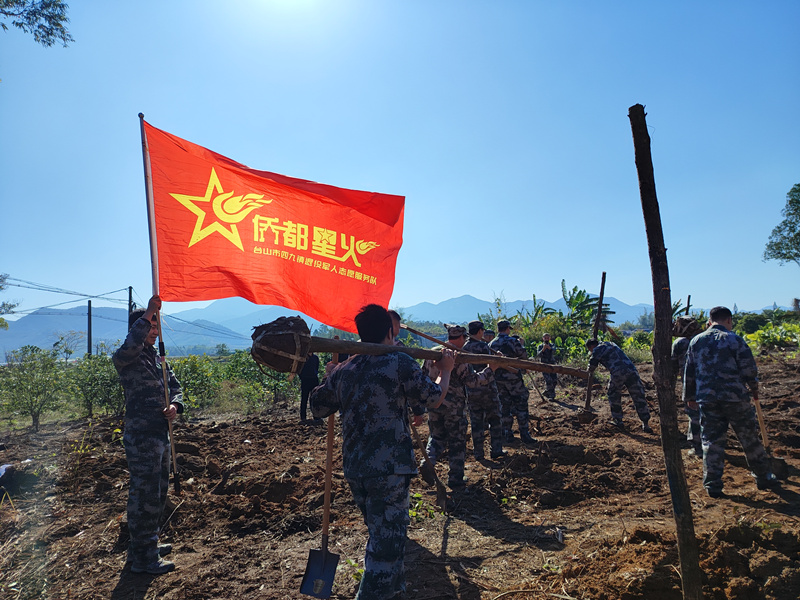 岭南春来早,植树正当时。为积极响应绿美广东生态建设号召,连日来,四九镇武装部、退役军人服务站组织发动广大退役军人志愿者和基层民兵持续开展“绿美广东 民兵在行动”义务植树志愿服务活动,用实际行动为台山增添新绿。
