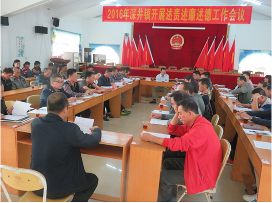 为贯彻省委关于纪律作风和廉政建设精神,落实中央“党要管党、从严治党”要求,12月6日上午,深井镇召开述责述廉述德(简称“三述”)工作会议,镇领导班子成员,纪委全体委员,联系“三述”单位的各办(局)干部,“三述”单位的村委会干部、村务监督委员会成员,其他本次未参加“三述”的村党组织书记、站所支部书记共60多人出席了本次会议。