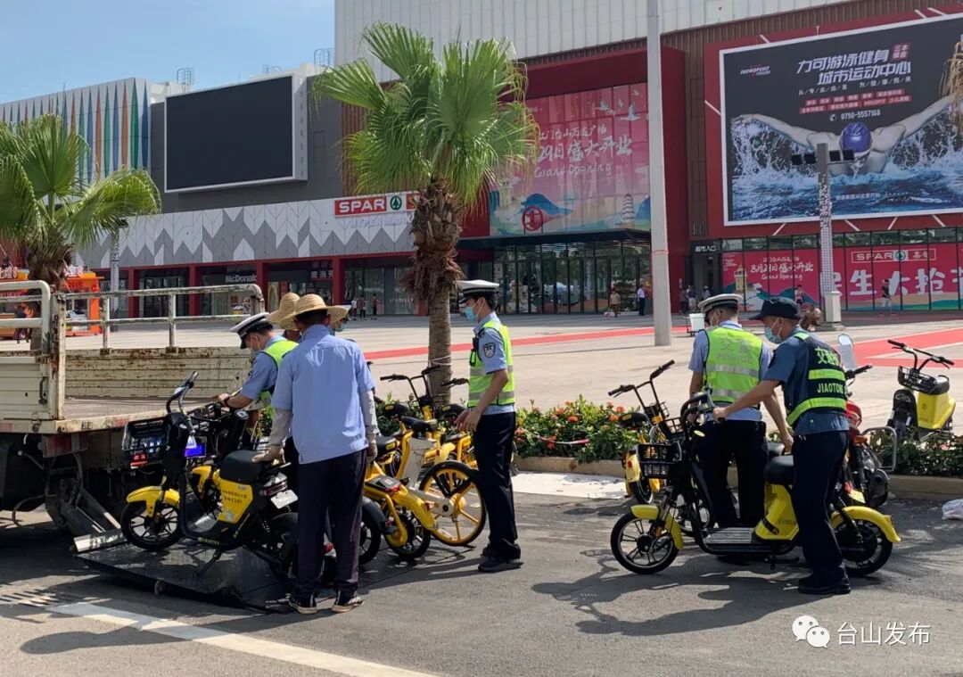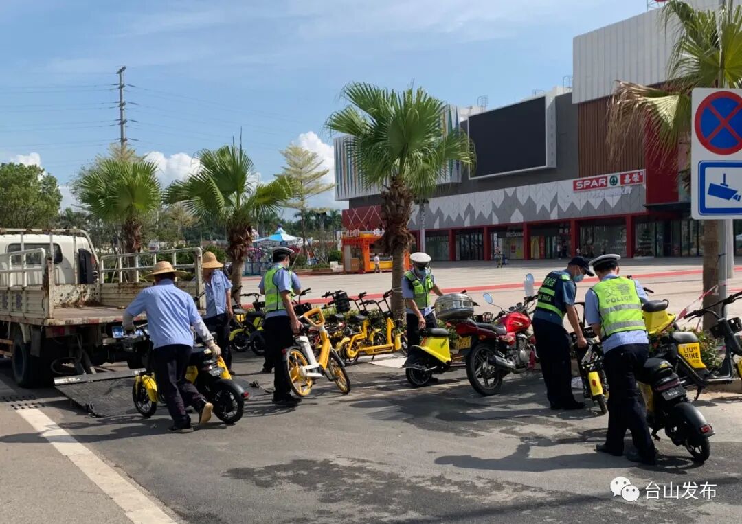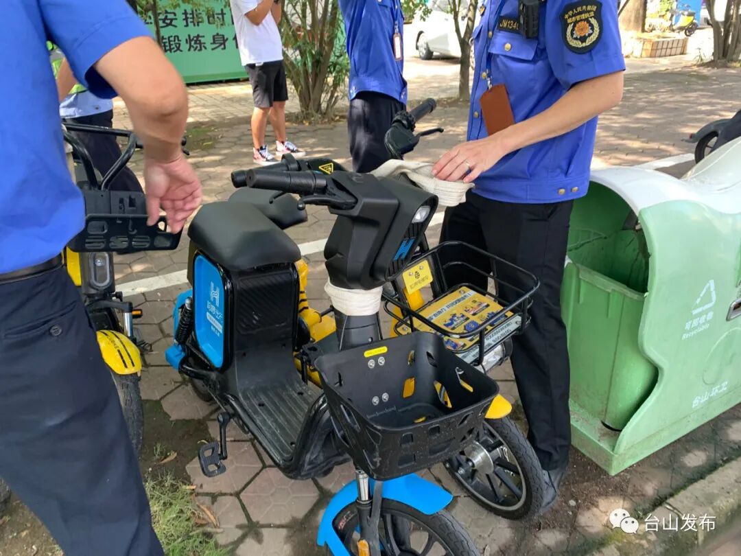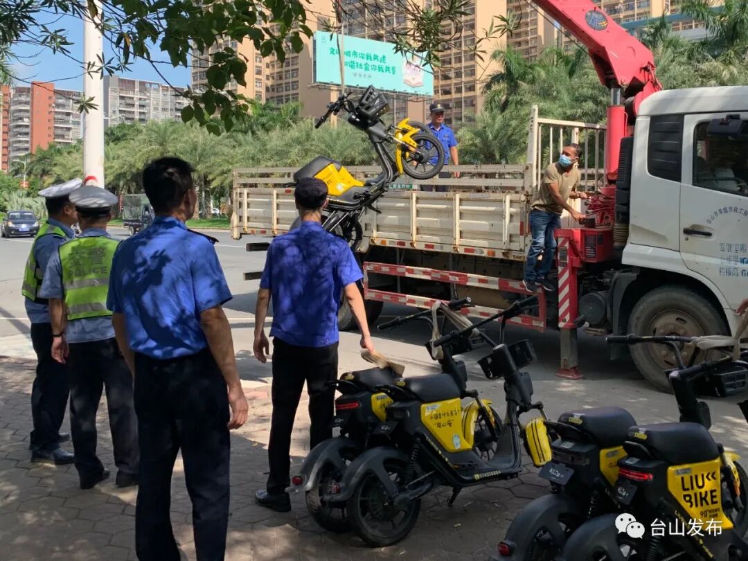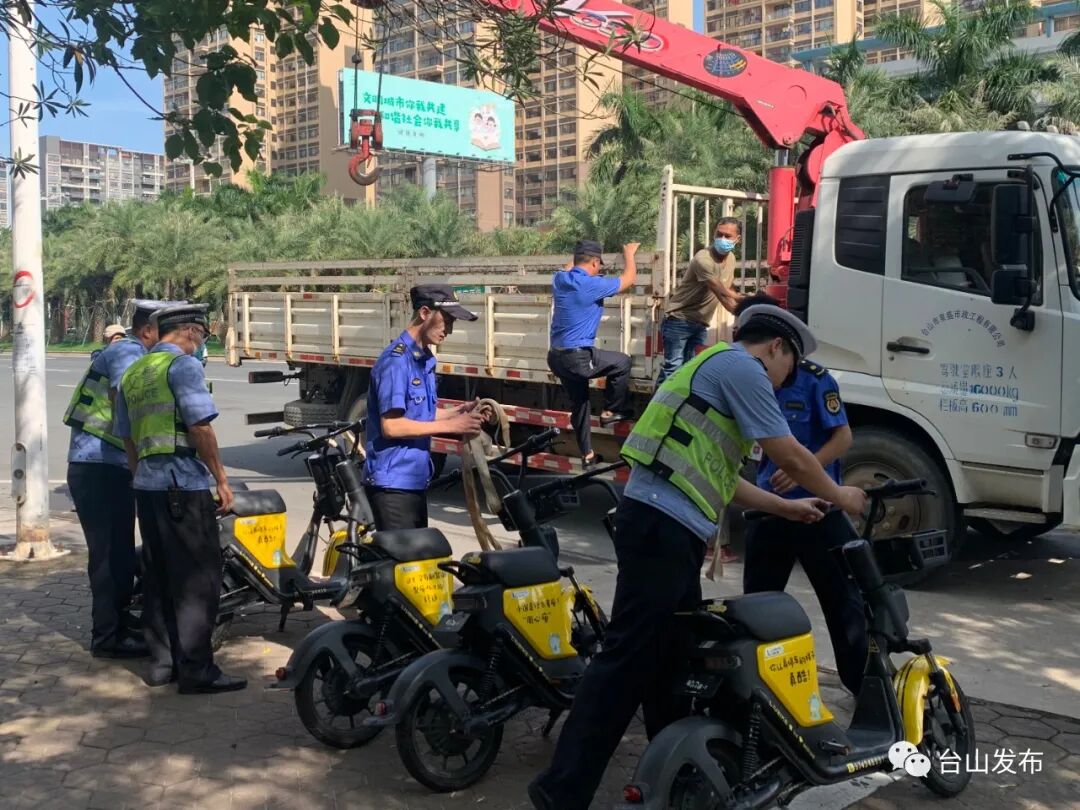 2020年9月7日上午, 由市公安交警大队、城管执法局和交通运输局等职能部门组成的联合执法队对台城未退市的共享电动车开展专项清理整治行动。