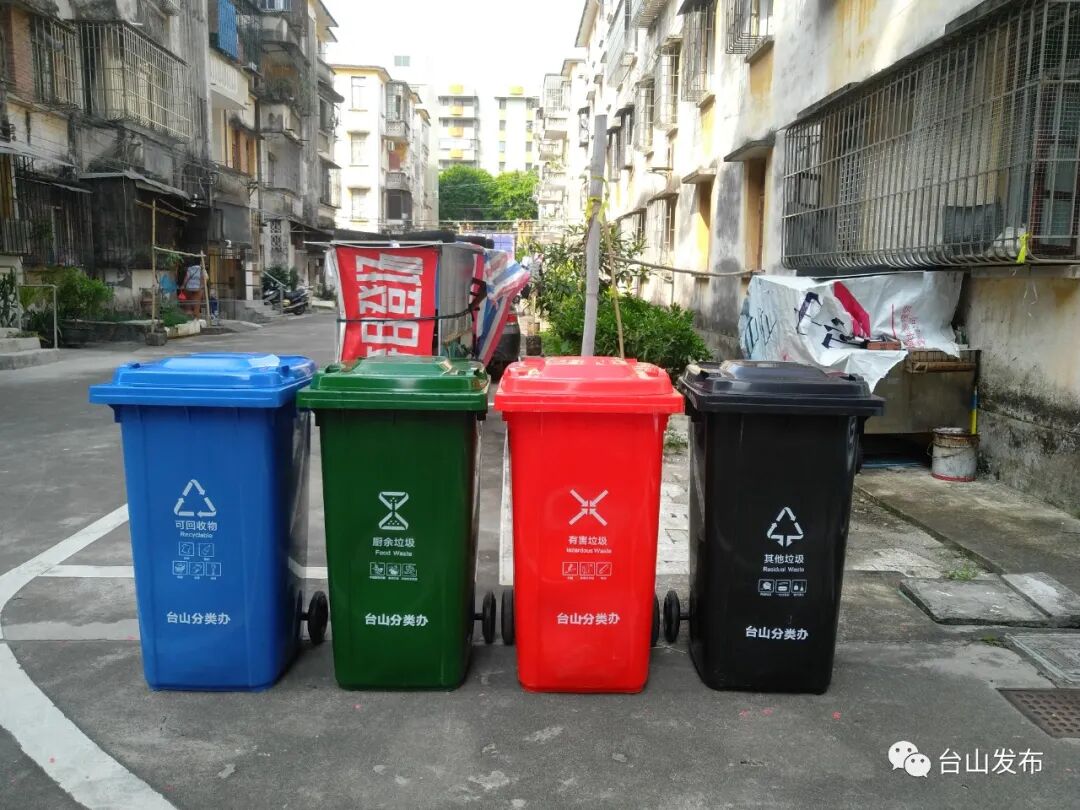 据介绍,新设的每一个垃圾投放点至少有一套四分类收集容器,包括可回收物蓝色垃圾桶、厨余垃圾绿色垃圾桶、有害垃圾红色垃圾桶、其他垃圾黑色垃圾桶,供市民日常分类投放垃圾使用。