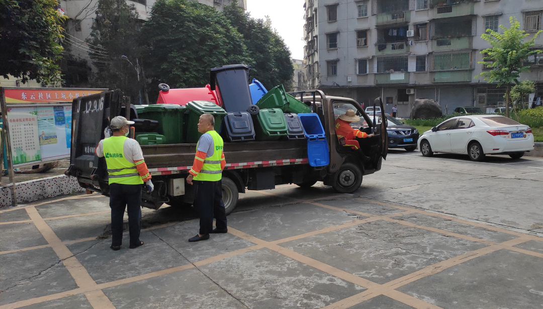 为了确保11月1日全面取消上门收垃圾业务的顺利实施,我市先后在台城非小区居民区共先后投放了1800只120升的垃圾分类桶和800只600升的垃圾桶,增加了80台垃圾分类三轮车进行应急处理垃圾,同时还增加了四台全密封的垃圾收集车,增加垃圾清运运力。目前,人力、运力已配齐到位。