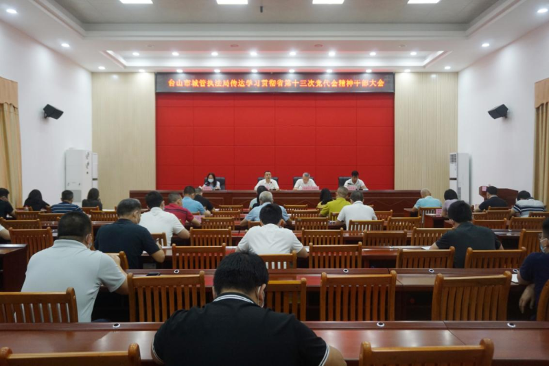 6月1日,市城管执法局召开党组(扩大)会议暨干部大会,传达学习省第十三次党代会精神和江门市、台山市有关会议精神。会议由党组书记、局长谢荣科主持并讲话,局领导班子成员,机关各股室、各直属单位负责人参加。