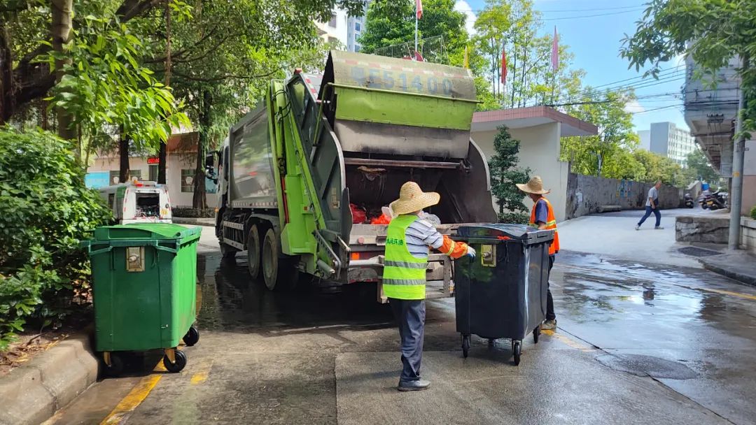在环卫工人中,人数最多的群体是环卫保洁员。全市环卫保洁员分成17个小组,负责城区东、南 、中三个片区近480多万平方米的日常保洁工作。张均娥负责海园居民小区一带的卫生清理,她与同事们一起坚守在城市保洁第一线,顶着烈日快速清理街道垃圾,抢在午时气温最高时段前完成普扫工作。张均娥表示,她们的工作时间从早上8点到12点,下午3点到7点。天气虽然热,大家都很辛苦,但是都很尽责,尽量搞干净,让我们的城市越来越靓。