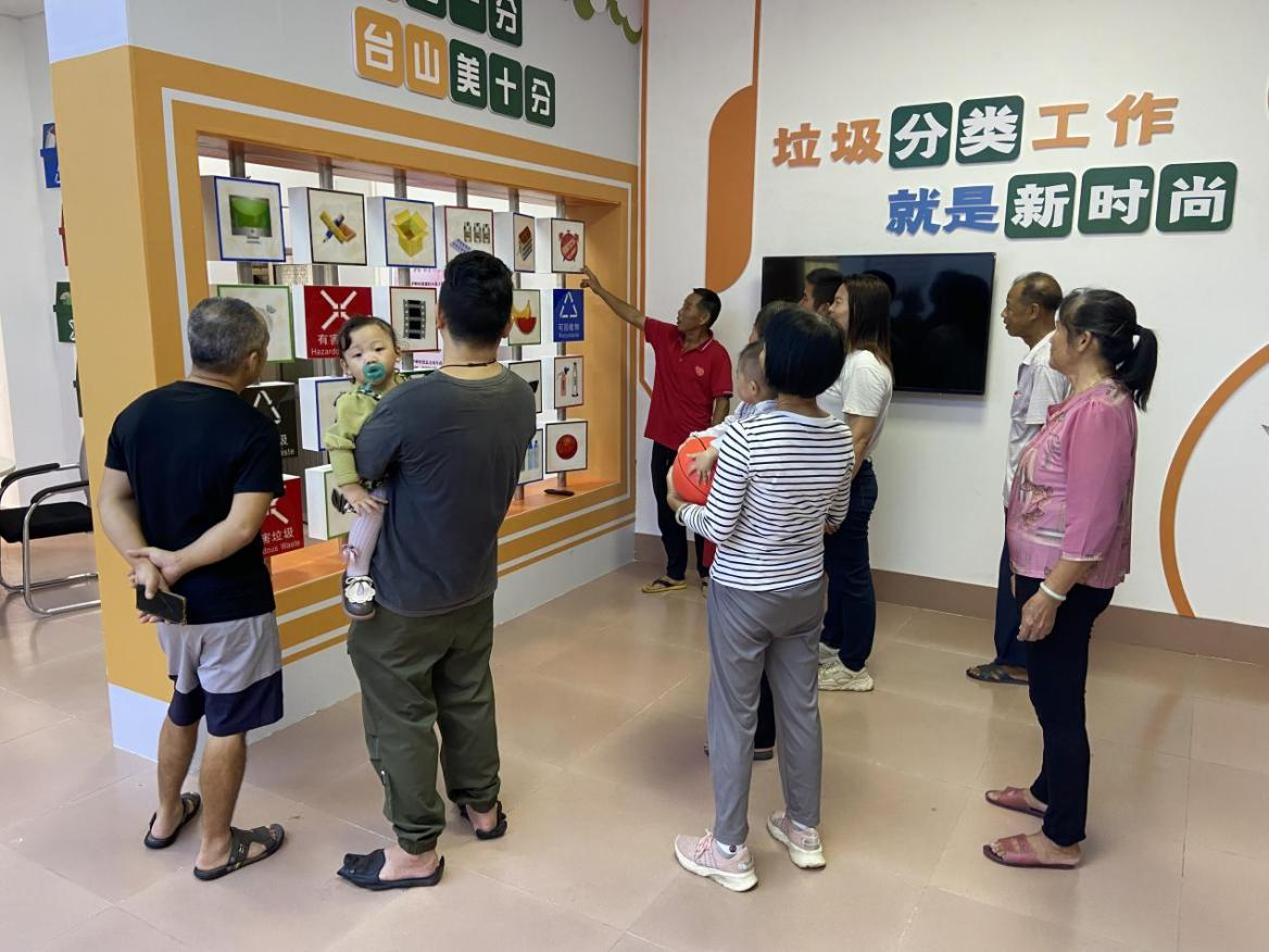 邀请群众到台山市赤溪镇垃圾分类科普体验馆,通过现场的游戏体验,寓教于乐,寓学于趣的互动方式,理论讲解+游戏实践的宣传形式,使居民耳濡目染,在理论中实践,在实践中巩固,引导更多的镇街居民成为垃圾分类的忠实践行者。台山市坚持从源头出发引导群众从“要我分到我要分”的绿色环保理念转变,促进群众对垃圾分类的认识。