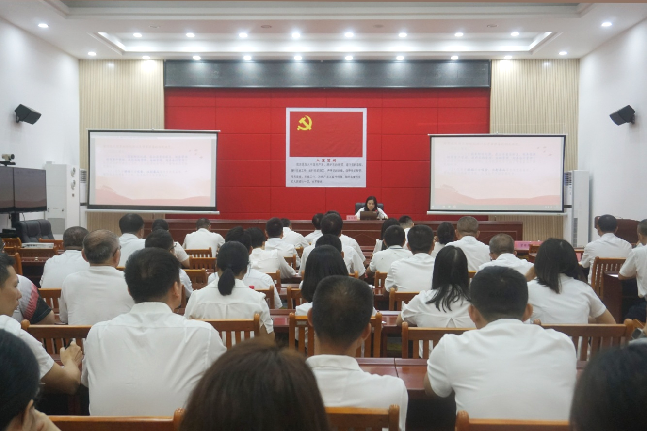 与会人员在党组书记、局长谢荣科带领下重温入党誓词。